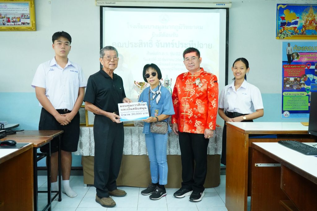 คุณประสิทธิ์ จันประทีปฉายและครอบครัว ซึ่งเป็นตัวแทนมอบเครื่องคอมพิวเตอร์ให้กับโรงเรียน จากเพื่อนศิษย์เก่าโรงเรียนบางมูลนาก