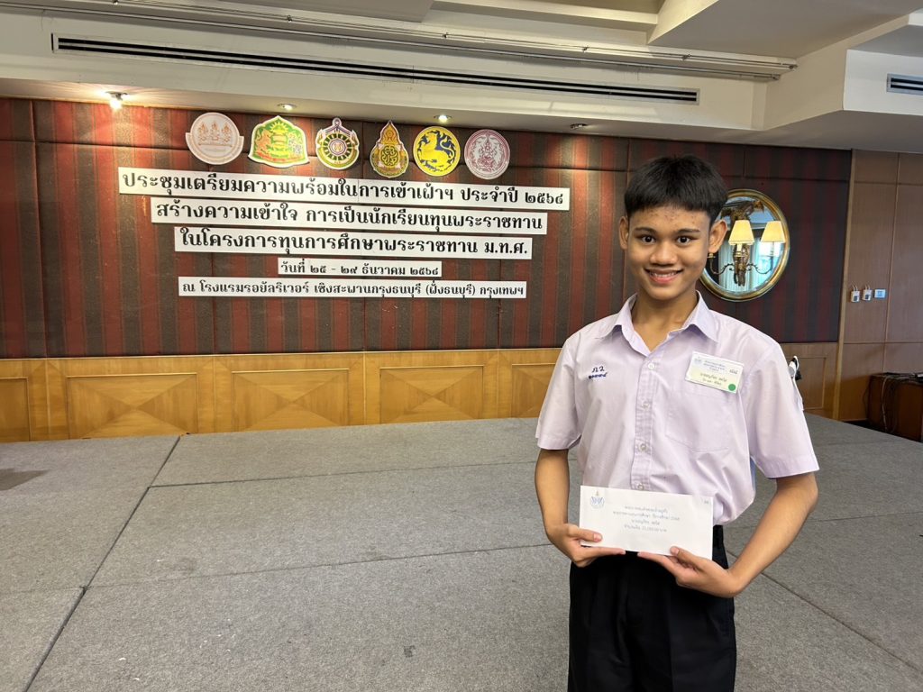 วันที่ 24–29 ธันวาคม พ.ศ. 2568 นายธนพล ฉ่ำเพียร ผู้อำนวยการโรงเรียน ได้มอบหมายให้นายเฉลิมพันธ์ ธีระสมบูรณ์ นำนักเรียนทุนการศึกษาพระราชทาน สมเด็จพระบรมโอรสาธิราชฯ สยามมกุฏราชกุมาร (ม.ท.ศ.) ภายใต้การดูแลของนางสาวอารีย์ แสงพระเวช ครูผู้ดูแลนักเรียนทุน ได้แก่ นายอนุภัทร สดใส นักเรียนชั้นมัธยมศึกษาปีที่ 4 นักเรียนทุน ม.ท.ศ. รุ่นที่ 17 เข้าร่วมการเตรียมความพร้อมและรับการอบรมแนวปฏิบัติของนักเรียนในโครงการทุนฯ เพื่อเตรียมเข้ารับพระราชทานทุนการศึกษาจากพระบาทสมเด็จพระเจ้าอยู่หัว ณ ศาลาดุสิดาลัย สวนจิตรลดา พระราชวังดุสิต เมื่อวันที่ 28 ธันวาคม 2568 ทั้งนี้ การดำเนินกิจกรรมดังกล่าวมีวัตถุประสงค์เพื่อเสริมสร้างความพร้อมด้านคุณลักษณะ ความรับผิดชอบ และแนวทางการศึกษาให้สอดคล้องกับเป้าหมายของโครงการทุนพระราชทาน อันมุ่งหวังให้นักเรียนสำเร็จการศึกษาระดับปริญญาตรีและนำองค์ความรู้ไปพัฒนาประเทศชาติอย่างยั่งยืนต่อไป