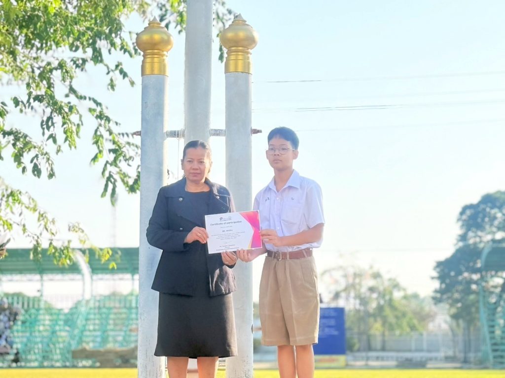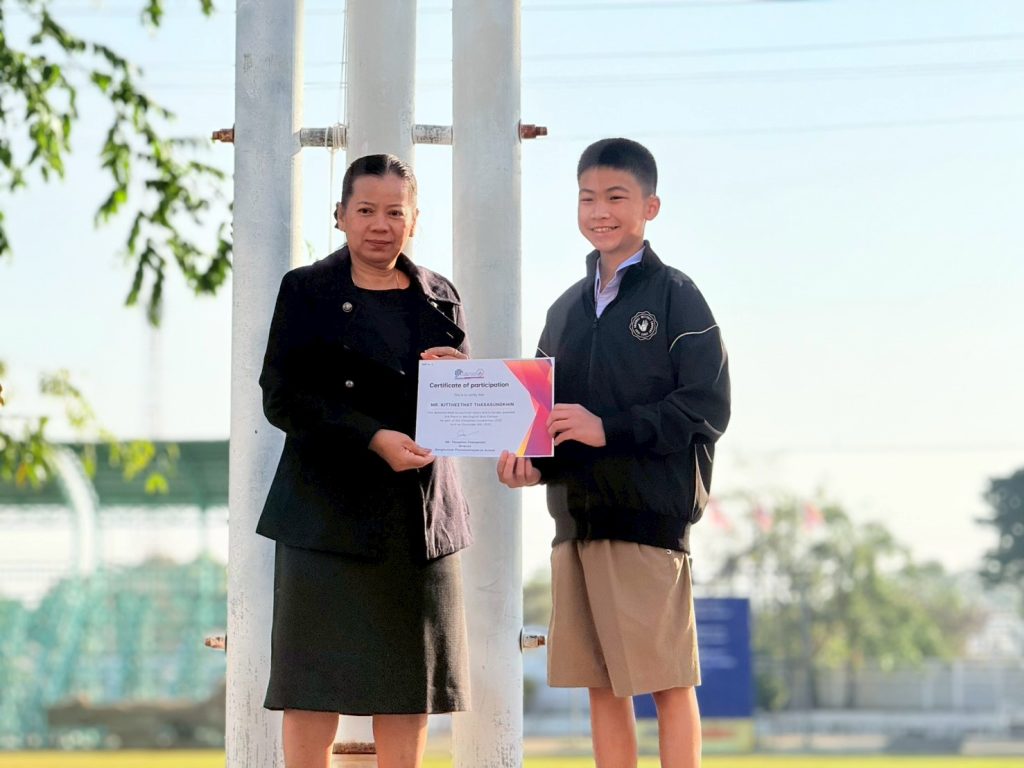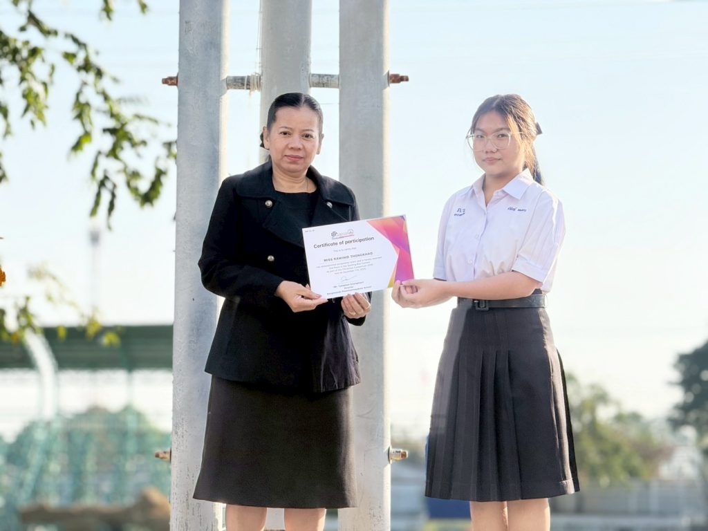 วันที่ 9 มกราคม 2569 นายธนพล ฉ่ำเพียร ผู้อำนวยการโรงเรียนบางมูลนากภูมิวิทยาคม มอบหมายนางอารีรัตน์ เถาสมบูรณ์ รองผู้อำนวยการกลุ่มบริหารงานบริหารทั่วไป มอบเกียรติบัตร และแสดงความยินดีแก่ นักเรียนที่ร่วมกิจกรรมของกลุ่มสาระการเรียนรู้ภาษาต่างประเทศ โดยมีผลการแข่งขันดังนี้