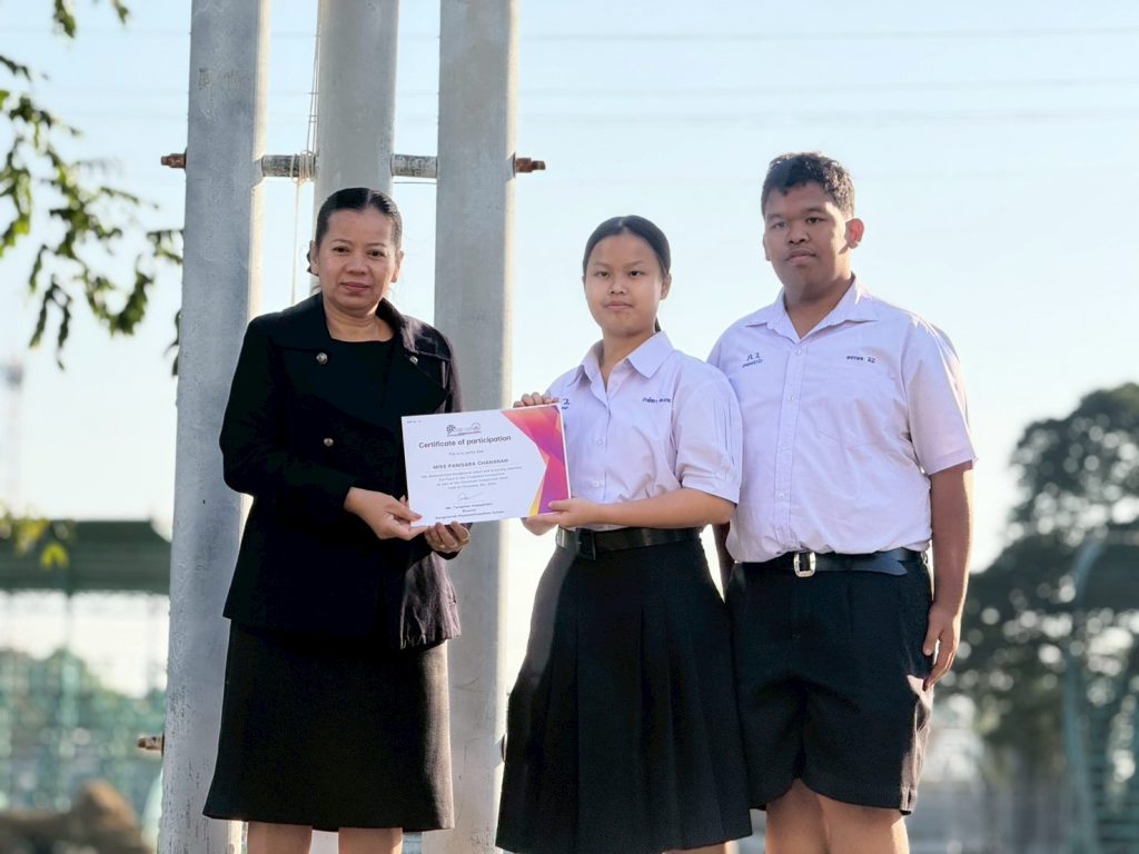 ลำดับที่ 3 เด็กชายศิราชา ฤทธิ์เรืองเดช ม.3/3 นางสาวชวัลรัตน์ จูเจี่ย และเด็กชายกฤติเดช ศรีโสภา ม.3/5