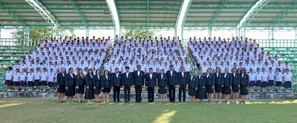 นายธนพล ฉ่ำเพียร ผู้อำนวยการโรงเรียนบางมูลนากภูมิวิทยาคม พร้อมด้วยรองผู้อำนวยการ คณะครูระดับชั้นมัธยมศึกษาปีที่ 3 และ 6 ร่วมกันถ่ายภาพหมู่เป็นที่ระลึกกับนักเรียนระดับชั้นมัธยมศึกษาปีที่ 3 และ 6 ณ สนามโรงเรียนบางมูลนากภูมิวิทยาคม