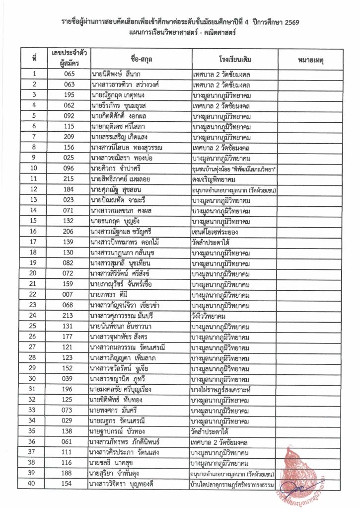 แผนการเรียนวิทยาศาสตร์ – คณิตศาสตร์