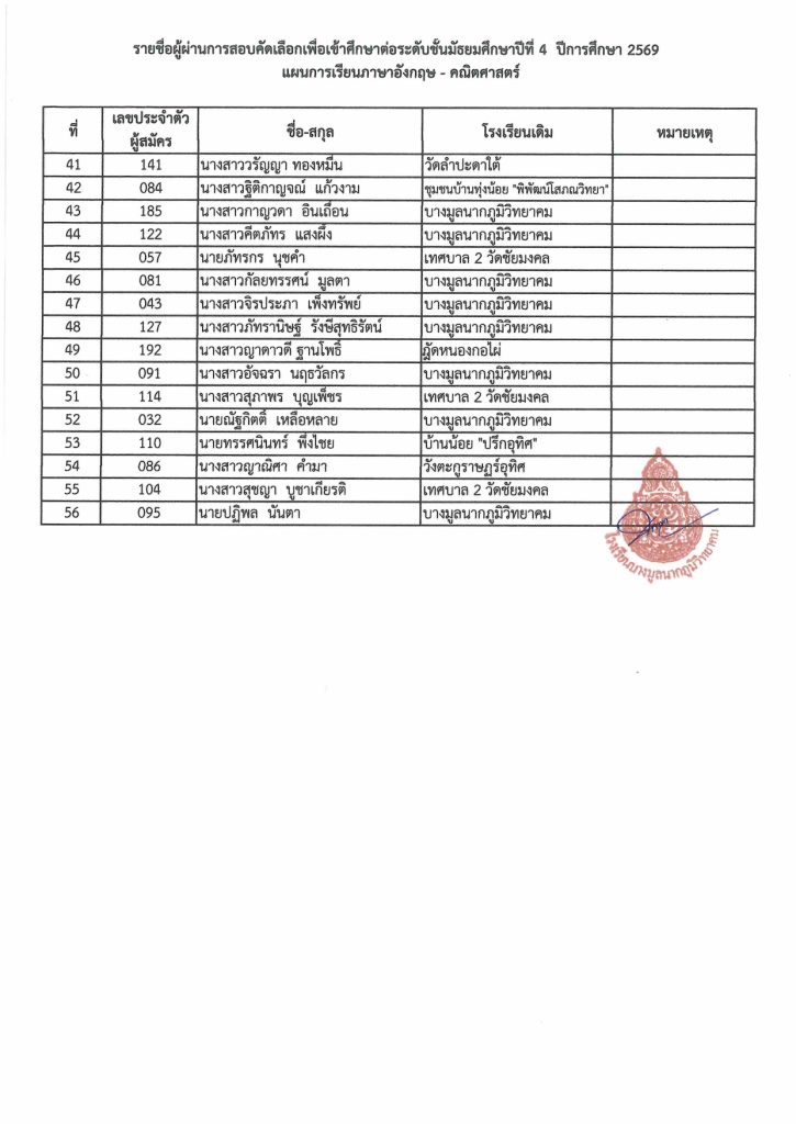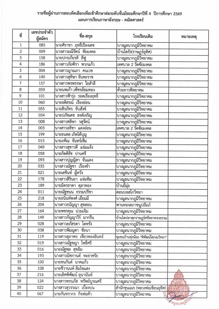 แผนการเรียนภาษาอังกฤษ – คณิตศาสตร์