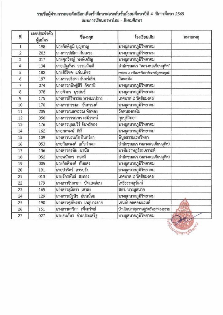 แผนการเรียนภาษาไทย – สังคมศึกษา