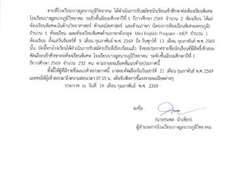 รับสมัครนักเรียนเข้าศึกษาต่อ ปีการศึกษา 2569