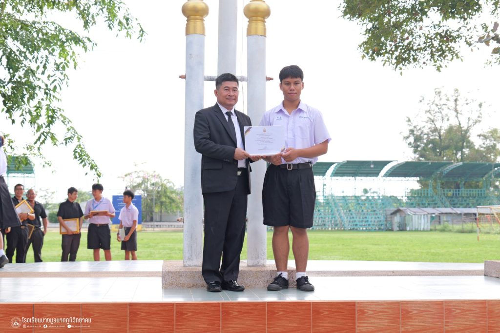 วันที่ 11 พฤศจิกายน 2568 นายธนพล ฉ่ำเพียร ผู้อำนวยการโรงเรียนบางมูลนากภูมิวิทยาคม มอบเกียรติบัตรแสดงความยินดี ให้กับนักเรียนที่เข้ารับการอบรมโครงการส่งเสริมโอลิมปิกวิชาการ (สอวน.) และพัฒนามาตรฐานวิทยาศาสตร์ศึกษา ค่าย 1 ประจำปีการศึกษา 2568 ได้แก่